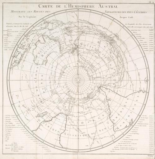 Keywords: Jacques Cook - Carte de l'Hemisphere Austral (1778).jpg ru авигационная ка та Южного полуша ия отоб ажающая ма ш уты некото ых из самых выдающихся мо еплавателей Составлена Джеймсом Куком капитаном Флота Его Величества на ф анцузском en A Chart of the Southern Hemisphere; shewing the Tracks of some of the most distinguished Navigators By Captain James Cook of his Majesty's Navy French version fr Carte de l'Hemisphere Austral Montran les Routes Navigateurs les plus Célebres Par le Capitaine Jacques Cook 1778 Cook Jacques 1778 Voyage dans l'hemisphere austral et autour du monde fait sur les vaisseaux de roi l'Aventure et la Resolution en 1772 1773 1774 1775 Volume 1 Paris Hotel de Thou; http //nla gov au/nla map-t335-1 National Library of Australia James Cook 1728-1779 ; engraver Robert Bénard b 1734 <gallery>File James Cook - A Chart of the Southern Hemisphere 1776 jpg English version</gallery> PD-old-100 Uploaded with UploadWizard James Cook maps relating to Old maps of Earth's hemispheres 1778 maps Engravings in the National Library of Australia Maps in French Engravings by Robert Bénard |
