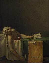 | Keywords: Jacques-Louis David - Marat assassinated - Google Art Project 2.jpg LargeImage Artwork Q636537 Creator Jacques-Louis David Der Tod des Marat The Death of Marat La muerte de Marat La Mort de Marat / Marat assassinĂ© La morte di Marat 1793 Oil on canvas cm 165 128 Institution Royal Museums of Fine Arts of Belgium 55 accession number http //193 190 214 119/fabritiusweb/List csp Index1 Index4 Database 2 OpacLanguage fre SearchMethod Find_1 SearchTerm1 3260 Profile Default PageType Start EncodedRequest D 24 BD 81 D7 D3 E7 90 2Dk F0 E1B DA 5C E8 WebAction NewSearch 3260 object history credit line ProvenanceEvent bequest 1886 Jules David-Chassagnol Paris ProvenanceEvent acquisition 1893 Royal Museums of Fine Arts of Belgium Dedicated signed and dated lower right Ă MARAT / DAVID / L ™AN - DEUX 7QGjl9R141MCBw PD-old-100-1923 DEFAULTSORT David Jacques-Louis David; The Death of Marat La Mort de Marat Jacques-Louis David 02 Google Art Project works in Royal Museums of Fine Arts of Belgium Google Art Project works by Jacques-Louis David |