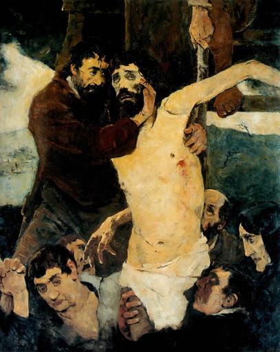 | Keywords: Jagerspacher-Kreuzabnahme.jpg Kreuzabnahme oil on canvas 120 x 100 cm Scan from Expressive Gegenständlichkeit - Schicksale figurativer Malerei und Grafik im 20 Jahrhundert Werke aus der Sammlung Gerhard Schneider um 1908/10 Gustav Jagerspacher 1879-1929 PD-old Gustav Jagerspacher Paintings of the descent from the Cross |