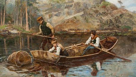 | Keywords: Jahn Ekenæs - Rusefiske.jpg Artwork Creator Jahn Ekenæs Oil canvas cm 60 107 object history credit line J Ekenæs ~ lower right signature accession number http //www gwpa no/nor/items/23637 Grev Wedels Plass Auksjoner Oslo June 07 2012 lot 113 PD-old-auto-1923 1920 DEFAULTSORT Ekenas Jahn Paintings by Jahn Ekenæs Fishing in art Fishing in Norway Fish traps Rowing in Norway Paintings of peasants Angling in art Oil on canvas 20th-century paintings location missing Genre paintings | ||||