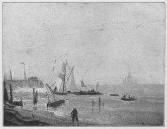 Keywords: Jahrhundertausstellung 1906 KatNr. 0004.jpg Artwork Creator Andreas Achenbach Marine Oil Canvas cm 18 22 Städt Histor Museum Frankfurt a M lt Quelle self scanned from own book Vorstand der Deutschen Jahrhundertausstellung Herausgeber žKatalog zur Ausstellung deutscher Kunst aus der Zeit von 1775 “1875 in der Königlichen Nationalgalerie Berlin Verlag F Bruckmann AG München 1906 2 Bände PD-old-100-1923 Other versions Paintings by Andreas Achenbach Jahrhundertausstellung deutscher Kunst 1906 ImageNote 1 17 13 1061 819 1092 843 2 Wasser und Himmel in fast demselben hellen schwachvioletten Grau mit Weiß Nur variiert der Himmel durch den stärkeren Auftrag des Weiß Graue Schiffe mit gelbweißen Segeln Im Strand schwaches Rosa mit braunen Einzelheiten “ Bez unten rechts schwarzgrau A Achenbach ImageNoteEnd 1