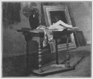 | Keywords: Jahrhundertausstellung 1906 KatNr. 0029.jpg Theodor Alt 1846-1937 Das Atelier Leibls Technique Oil Canvas cm 27 32 Professor W Trübner Karlsruhe i B lt Quelle self scanned from own book Vorstand der Deutschen Jahrhundertausstellung Herausgeber žKatalog zur Ausstellung deutscher Kunst aus der Zeit von 1775 “1875 in der Königlichen Nationalgalerie Berlin Verlag F Bruckmann AG München 1906 2 Bände 1869 PD-old-70-1923 Other versions Theodor Alt Jahrhundertausstellung deutscher Kunst 1906 ImageNote 1 13 12 699 590 725 615 2 Grauer Tisch auf schokoladebraunem dünngestrichenem Grund Auf dem Tisch ein Tuch aus mattem Hellbraun und Rosa dunkelbraune Vase und grauweiße Blätter Das Bild an der Wand dunkelstes Braun in verhalten orangenem Rahmen “ Bez unten rechts schwarz Th Alt 1869 ImageNoteEnd 1 |