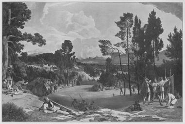 | Keywords: Jahrhundertausstellung 1906 KatNr. 0127.jpg Artwork Creator Carl Blechen Semnonenlager am Müggelsee Oil Canvas cm 126 200 Nationalgalerie Berlin lt Quelle self scanned from own book Vorstand der Deutschen Jahrhundertausstellung Herausgeber žKatalog zur Ausstellung deutscher Kunst aus der Zeit von 1775 “1875 in der Königlichen Nationalgalerie Berlin Verlag F Bruckmann AG München 1906 2 Bände 1828 PD-old-70-1923 Other versions Jahrhundertausstellung deutscher Kunst 1906 Carl Blechen in Jahrhundertausstellung deutscher Kunst 1906 Semnones ImageNote 1 24 18 2363 1583 2420 1625 2 Die Wiese mattes Grün auf gelber Basis Dunkelgrüne Bäume mit schwarzen Schatten Das Fleisch der Krieger helles rötliches Braun In den Kleidungen überwiegen graue Töne Der vorderste auf der Erde liegende Krieger in reichem Weiß und leuchtendem Schwarz In seiner Nähe ein paar isolierte rote Pilze deren Farbe nur noch in einigen Gürteln wiederkehrt Heller graublauer Himmel mit bläulichweißen und hellgelblichen Wolken Die abgebrochene Wolken-Elipse ist dunkel graublau “ 1828 nach Lichtwark ImageNoteEnd 1 |