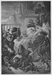 | Keywords: Jahrhundertausstellung 1906 KatNr. 0442.jpg Artwork Creator Anselm Feuerbach Der Tod des Pietro Aretino Oil Canvas cm 270 175 Gottfried Keller-Stiftung Basel lt Quelle self scanned from own book Vorstand der Deutschen Jahrhundertausstellung Herausgeber žKatalog zur Ausstellung deutscher Kunst aus der Zeit von 1775 “1875 in der Königlichen Nationalgalerie Berlin Verlag F Bruckmann AG München 1906 2 Bände 1854 PD-old-70-1923 Other versions Paintings by Anselm Feuerbach Jahrhundertausstellung deutscher Kunst 1906 Anselm Feuerbach in Jahrhundertausstellung deutscher Kunst 1906 ImageNote 1 34 38 1692 2467 1739 2539 2 Vorherrschend das wässrige Hellblau in dem Tischtuch und den Gewändern der Frauen das sich im Himmel mit dem Hellgrau der Wolken und rötlichen Tönen vermengt Die mit dem Rücken zum Zuschauer gekehrte Frau in dunkelorangenem Obergewand Die Männer sind meist dunkelbordeauxrot gekleidet Aretino sehr dunkel Boden und Architektur dunkelgrau “ Bez unten links A Feuerbach 1854 “ Allgeyer-Neumann Nr 164 ImageNoteEnd 1 |