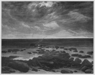 | Keywords: Jahrhundertausstellung 1906 KatNr. 0524.jpg Artwork Creator Caspar David Friedrich Meeresküste bei Mondschein Oil Canvas cm 77 97 Nationalgalerie Berlin lt Quelle self scanned from own book Vorstand der Deutschen Jahrhundertausstellung Herausgeber žKatalog zur Ausstellung deutscher Kunst aus der Zeit von 1775 “1875 in der Königlichen Nationalgalerie Berlin Verlag F Bruckmann AG München 1906 2 Bände vor 1820 PD-old-70-1923 Other versions Caspar David Friedrich in Jahrhundertausstellung deutscher Kunst 1906 Jahrhundertausstellung deutscher Kunst 1906 ImageNote 1 28 15 1559 1244 1610 1280 2 Die Steine in einem mit verhülltem Violett versetzten dunklen Graublau Zwischen ihnen gelbgraues Wasser das nach dem Horizont zu immer dunkler wird Das Schiff ist rötlich beleuchtet Dunkelgraue Wolken die die Bläue durchscheinen lassen “ Vor 1820 ImageNoteEnd 1 |