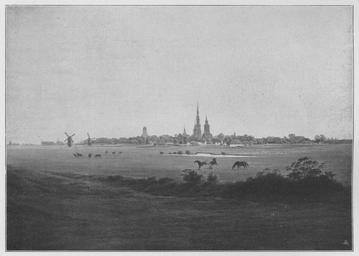 | Keywords: Jahrhundertausstellung 1906 KatNr. 0531.jpg Artwork Creator Caspar David Friedrich Wiesen bei Greifswald Oil Canvas cm 35 49 Kunsthalle Hamburg lt Quelle self scanned from own book Vorstand der Deutschen Jahrhundertausstellung Herausgeber žKatalog zur Ausstellung deutscher Kunst aus der Zeit von 1775 “1875 in der Königlichen Nationalgalerie Berlin Verlag F Bruckmann AG München 1906 2 Bände 1820 “1830 PD-old-70-1923 Other versions Caspar David Friedrich in Jahrhundertausstellung deutscher Kunst 1906 Jahrhundertausstellung deutscher Kunst 1906 ImageNote 1 26 18 1526 1087 1581 1127 2 Grün Blaugrau und Gelb in reichen Abtönungen Das Grün beginnt am dunkelsten im Vordergrund wo es mit Braun gemischt ist nimmt im Mittelplan gelb an und schließt vor der Silhouette der Stadt mit einer schmalen gelben Linie ab Die Stadt in milchigem Grau durch das diskrete Grün der Bäume und das schwache Rosa einzelner Dächer bereichert Der Himmel geht von Orange nach hellstem Türkisblau über; das Orange überwiegt “ 1820 “1830 ImageNoteEnd 1 |