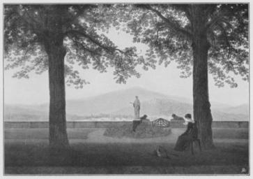 | Keywords: Jahrhundertausstellung 1906 KatNr. 0535.jpg Artwork Creator Caspar David Friedrich Aussicht von einem Park in eine freie Landschaft Oil Canvas cm 53 5 70 Königliche Villa Liegnitz Erdmannsdorf lt Quelle self scanned from own book Vorstand der Deutschen Jahrhundertausstellung Herausgeber žKatalog zur Ausstellung deutscher Kunst aus der Zeit von 1775 “1875 in der Königlichen Nationalgalerie Berlin Verlag F Bruckmann AG München 1906 2 Bände 1811 PD-old-100-1923 Other versions Caspar David Friedrich in Jahrhundertausstellung deutscher Kunst 1906 Jahrhundertausstellung deutscher Kunst 1906 ImageNote 1 14 19 1355 938 1384 976 2 Braunroter Vordergrund mit stumpfem Grün das Blattwerk der Bäume gelbgrün Auf dem Rasen ein gelber Korb mit purpurrotem Tuch Die Frau in schwarzem Kleid Hintergrund hellgrüne mit Grau versetzte Wiese zwischen Hügeln aus hellem grauem Violett Der Himmel beginnt gelb und geht nach oben in Hellblau über “ 1811 ImageNoteEnd 1 |