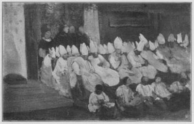 Keywords: Jahrhundertausstellung 1906 KatNr. 0692c.jpg Oil Canvas auf Pappe aufgeklebt cm 32 52 Ernst Hausmann Berlin lt Quelle self scanned from own book Vorstand der Deutschen Jahrhundertausstellung Herausgeber žKatalog zur Ausstellung deutscher Kunst aus der Zeit von 1775 “1875 in der Königlichen Nationalgalerie Berlin Verlag F Bruckmann AG München 1906 2 Bände 1854 PD-old-70-1923 Other versions ImageNote 1 13 10 1120 712 1149 736 2 Die Stufen ziegelrot In den Röcken der Priester der ersten Bank ist das Rot durch die stärkere Bewegung des Pinsels lebhafter und nähert sich Purpur In den Stolas dieser Reihe ist das Weiß stark mit Gelb versetzt Die Kappen alle rein weiß Die Lehnen havanabraun Die Stehenden der hinteren Reihe und die am Boden hockenden Chorknaben sind schwarz gekleidet mit weißgrauen Chorhemden Der Boden dunkelgrün In der Rückwand namentlich violettes Bordeaux Daneben verdecktes Weiß und Braun Dünner Auftrag “ 1854 ImageNoteEnd 1 Friedrich Karl Hausmann Jahrhundertausstellung deutscher Kunst 1906