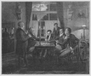 | Keywords: Jahrhundertausstellung 1906 KatNr. 0765a.jpg Artwork Creator Johann Erdmann Hummel Schachpartie Oil Canvas cm 37 41 Nationalgalerie Berlin lt Quelle self scanned from own book Vorstand der Deutschen Jahrhundertausstellung Herausgeber žKatalog zur Ausstellung deutscher Kunst aus der Zeit von 1775 “1875 in der Königlichen Nationalgalerie Berlin Verlag F Bruckmann AG München 1906 2 Bände PD-old-70-1923 Other versions Johann Erdmann Hummel Jahrhundertausstellung deutscher Kunst 1906 ImageNote 1 12 13 847 703 875 732 2 Dunkelrotbraune Stimmung Dunkelgraue dunkelolivene schwarze und braune Kostüme Rote Gardinen Die drei Lichtquellen Mondlicht Kerzenlicht Lampenlicht bleiben im wesentlichen isoliert Die Gesichter sind gleichmäßig rötlich beleuchtet Der Schein der Lampe erhellt die olivene Wand Die grellroten Streifen am Beinkleid des Offiziers lassen eine vierte Lichtquelle vermuten ImageNoteEnd 1 |