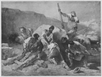 | Keywords: Jahrhundertausstellung 1906 KatNr. 0821a.jpg Oil Canvas cm 240 266 Kunsthalle Hamburg lt Quelle self scanned from own book Vorstand der Deutschen Jahrhundertausstellung Herausgeber žKatalog zur Ausstellung deutscher Kunst aus der Zeit von 1775 “1875 in der Königlichen Nationalgalerie Berlin Verlag F Bruckmann AG München 1906 2 Bände PD-old-70-1923 Other versions ImageNote 1 20 20 1953 1453 1988 1498 2 Braunes Fleisch In den Kostümen Weiß Blau Gelb und Braun Der Stein gespachteltes Gelb mit Grau und Braun gemengt Tiere grau und braun Die Felswand graubraun Hintergrund grau “ Bez unten rechts braun Fr Keller München ImageNoteEnd 1 Friedrich von Keller painter Jahrhundertausstellung deutscher Kunst 1906 Quarrymen in art |
