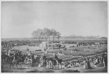 | Keywords: Jahrhundertausstellung 1906 KatNr. 1204a.jpg Dietrich Monten Feldmesse bei Friedberg Technique Oil Canvas cm 220 248 Kgl Armee-Museum München lt Quelle Vorstand der Deutschen Jahrhundertausstellung Herausgeber žKatalog zur Ausstellung deutscher Kunst aus der Zeit von 1775 “1875 in der Königlichen Nationalgalerie Berlin Verlag F Bruckmann AG München 1906 2 Bände ; self scanned from own book 1842 PD-old-70-1923 Other versions Dietrich Monten Jahrhundertausstellung deutscher Kunst 1906 Military services of worship ImageNote 1 26 36 2548 1700 2613 1765 2 Helles schwach grünlichbraunes Terrain Die graubraunen Bäume mit hellem mattgrünem Blätterwerk Schwarze Raupenhelme und hellgraue Bajonette Graublaue Uniformen mit purpurroten Aufschlägen Die Pferde namentlich rötlichbraun Die Umrisse der Stadt in hellem Graublau Der Himmel beginnt mit dünnen rosagrauen Wolken und wird im oberen Teil hellblau “ Bez unten rechts braun D Monten 1842 ImageNoteEnd 1 |
