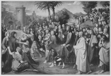 Keywords: Jahrhundertausstellung 1906 KatNr. 1293.jpg Artwork Creator Friedrich Overbeck Einzug Christi in Jerusalem Oil Canvas cm 157 228 Marienkirche Lübeck lt Quelle Vorstand der Deutschen Jahrhundertausstellung Herausgeber žKatalog zur Ausstellung deutscher Kunst aus der Zeit von 1775 “1875 in der Königlichen Nationalgalerie Berlin Verlag F Bruckmann AG München 1906 2 Bände ; self scanned from own book 1822 PD-old-70-1923 Other versions Christ's Entry into Jerusalem by Friedrich Overbeck Jahrhundertausstellung deutscher Kunst 1906 ImageNote 1 16 14 1825 1238 1858 1273 2 Das Fleisch meist hellbraun auch “ zumal in der Frauengruppe links “ bleiches Hellgrau In den Kostümen überwiegen rote Töne neben Blau Orange etc Die Vegetation braunes Grün Rosabraune Architektur Graues Tor Der Himmel und die Berge des Hintergrundes blau Die Gruppe des Hintergrundes rechts besteht aus Porträts der Nazarener “ Bez unten links grau J F Overbeck MDCCCXXII ImageNoteEnd 1