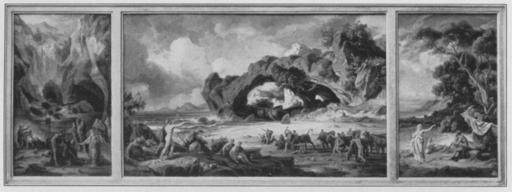 | Keywords: Jahrhundertausstellung 1906 KatNr. 1344.jpg Artwork Creator Friedrich Preller der Ältere Farbenskizzen zur Odyssee Oil Canvas mittlere cm 40 67 seitliche cm 40 24 Frau von Eichel-Streiber Eisenach lt Quelle Vorstand der Deutschen Jahrhundertausstellung Herausgeber žKatalog zur Ausstellung deutscher Kunst aus der Zeit von 1775 “1875 in der Königlichen Nationalgalerie Berlin Verlag F Bruckmann AG München 1906 2 Bände ; self scanned from own book 1864/65 PD-old-70-1923 Other versions Friedrich Preller der Ältere Jahrhundertausstellung deutscher Kunst 1906 ImageNote 1 17 17 1938 701 1985 743 2 Das Fleisch in mehr oder weniger gebräuntem Rosa Die Kostüme vorwiegend rosa zuweilen mattgelb und mattblau Die Felsen oft im selben Rosa auch in grauen und graubraunen Tönen Ebenso die Architektur Die Bäume grünlichgrau und braungrün Das Wasser türkisblau oder grünlichblau Der Himmel fast ausnahmslos türkisblau mit weißgrauen und rosabraunen Wolken “ Die Bezeichnung gewöhnlich unten links Monogramm F P zwischen 18 und 65 die Nrn 1345 “47 und 1350 datiert 1864 ImageNoteEnd 1 |