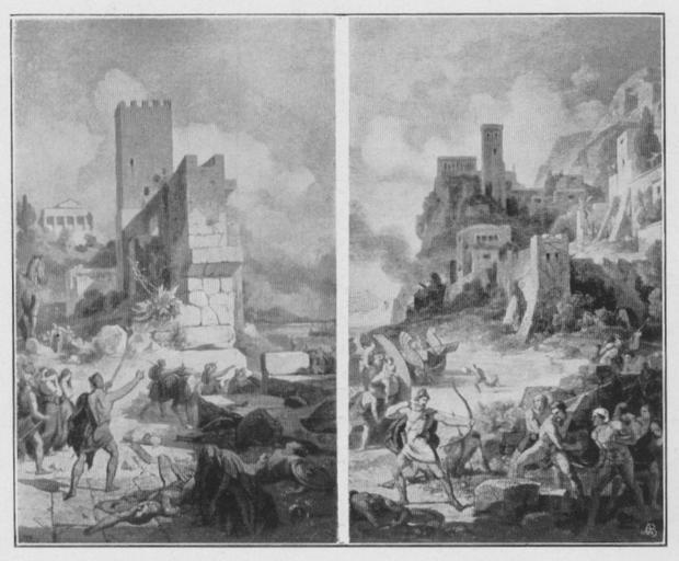 Keywords: Jahrhundertausstellung 1906 KatNr. 1348.jpg Artwork Creator Friedrich Preller der Ältere Farbenskizzen zur Odyssee Oil Canvas je cm 40 24 Frau von Eichel-Streiber Eisenach lt Quelle Vorstand der Deutschen Jahrhundertausstellung Herausgeber žKatalog zur Ausstellung deutscher Kunst aus der Zeit von 1775 “1875 in der Königlichen Nationalgalerie Berlin Verlag F Bruckmann AG München 1906 2 Bände ; self scanned from own book 1864/65 PD-old-70-1923 Other versions Friedrich Preller der Ältere Jahrhundertausstellung deutscher Kunst 1906 ImageNote 1 15 22 975 790 1007 832 2 Das Fleisch in mehr oder weniger gebräuntem Rosa Die Kostüme vorwiegend rosa zuweilen mattgelb und mattblau Die Felsen oft im selben Rosa auch in grauen und graubraunen Tönen Ebenso die Architektur Die Bäume grünlichgrau und braungrün Das Wasser türkisblau oder grünlichblau Der Himmel fast ausnahmslos türkisblau mit weißgrauen und rosabraunen Wolken “ Die Bezeichnung gewöhnlich unten links Monogramm F P zwischen 18 und 65 die Nrn 1345 “47 und 1350 datiert 1864 ImageNoteEnd 1 |