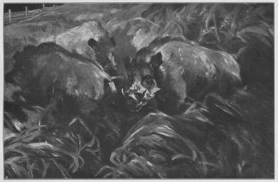 | Keywords: Jahrhundertausstellung 1906 KatNr. 1387.jpg Artwork Creator Louis Ferdinand von Rayski Wildschweine Oil Canvas cm 148 233 Kammerherr v Schroeter Schloß Bieberstein bei Nossen lt Quelle Vorstand der Deutschen Jahrhundertausstellung Herausgeber žKatalog zur Ausstellung deutscher Kunst aus der Zeit von 1775 “1875 in der Königlichen Nationalgalerie Berlin Verlag F Bruckmann AG München 1906 2 Bände ; self scanned from own book um 1863 PD-old-70-1923 Other versions Louis Ferdinand von Rayski Jahrhundertausstellung deutscher Kunst 1906 Paintings formerly in the Galerie Neue Meister Dresden ImageNote 1 22 22 1943 1267 1995 1307 2 Das Blätterwerk das im Vordergrund rötlichgelbe Töne auf grauem Grund zeigt geht nach hinten zu in Grünlichgrau über Die Schweine in einem rötlichvioletten Grau das zumal in den Kopfpartien von Braun verdrängt wird Das Braun vertieft sich in den Schatten zu unvermittelt dunklen Flecken Rapider Auftrag so daß jedes wesentliche Detail des Bildes mit einem einzigen Pinselstrich gemalt scheint “ Um 1863 ImageNoteEnd 1 |