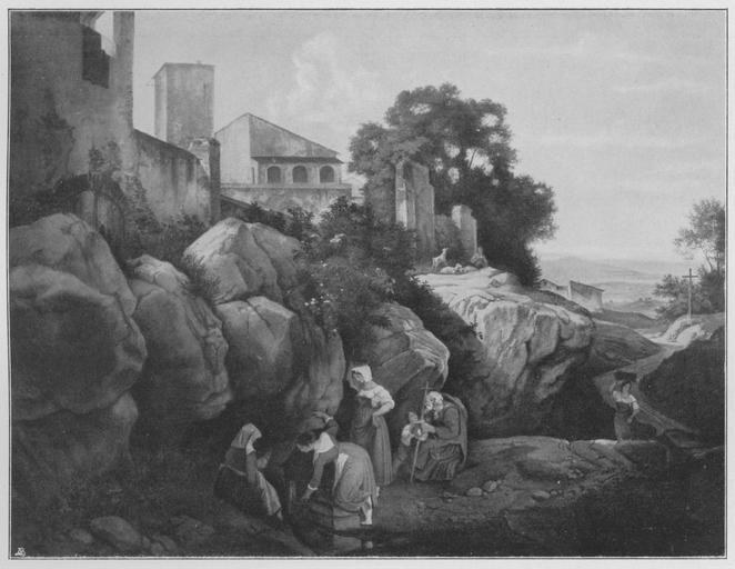 Keywords: Jahrhundertausstellung 1906 KatNr. 1424.jpg Artwork Creator Ludwig Richter Ariccia Oil Canvas cm 59 77 Kgl Gemäldegalerie Dresden lt Quelle Vorstand der Deutschen Jahrhundertausstellung Herausgeber žKatalog zur Ausstellung deutscher Kunst aus der Zeit von 1775 “1875 in der Königlichen Nationalgalerie Berlin Verlag F Bruckmann AG München 1906 2 Bände ; self scanned from own book 1828 PD-old-70-1923 Other versions Ludwig Richter Jahrhundertausstellung deutscher Kunst 1906 Galerie Neue Meister Dresden ImageNote 1 18 18 1696 1300 1736 1343 2 Die grauen Felsen mit braunen Schatten In den Kostümen gedämpftes Purpur Blau Braun etc Rosabraunes Fleisch Architektur gebräuntes Grau Rotbraune Einzelheiten Das Graublau der Ferne nähert sich der Farbe des Himmels Gelblichgraue Wolken “ Bez unten rechts schwarz L Richter pinx Meißen 1828 ImageNoteEnd 1 |