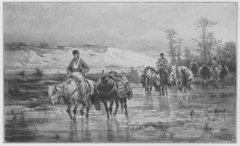 Keywords: Jahrhundertausstellung 1906 KatNr. 1592.jpg Artwork Creator Adolf Schreyer Serbische Pferde durch die Furt gehend Oil Canvas cm 43 72 Frau Emma Nelke Berlin lt Quelle Vorstand der Deutschen Jahrhundertausstellung Herausgeber žKatalog zur Ausstellung deutscher Kunst aus der Zeit von 1775 “1875 in der Königlichen Nationalgalerie Berlin Verlag F Bruckmann AG München 1906 2 Bände ; self scanned from own book PD-old-70-1923 Other versions Adolf Schreyer Jahrhundertausstellung deutscher Kunst 1906 ImageNote 1 21 14 1814 1095 1865 1135 2 Das durchsichtige Wasser mit grünlichen rosa grauen und weißen Reflexen der Farben der Pferde und ihres Gepäcks Die Erde des aufgerissenen Hügels etwa ockergelb mit weißen und grauen Stellen Bläulichgrauer Wolkenhimmel “ Bez unten rechts braun Ad Schreyer ImageNoteEnd 1 |