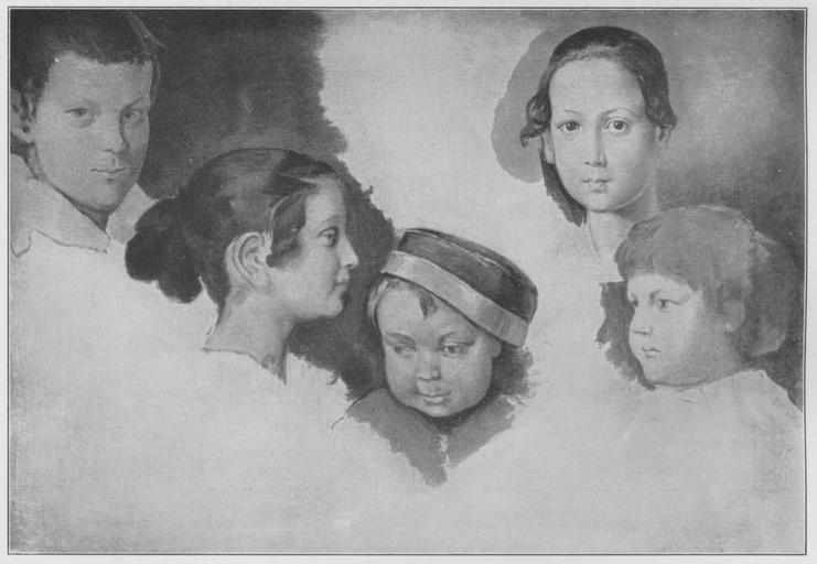 Keywords: Jahrhundertausstellung 1906 KatNr. 1615.jpg Artwork Creator Moritz von Schwind Köpfe der Kinder von Jul Schnorr von Carolsfeld Oil Canvas cm 63 87 Dr L Schnorr von Carolsfeld Dresden lt Quelle Vorstand der Deutschen Jahrhundertausstellung Herausgeber žKatalog zur Ausstellung deutscher Kunst aus der Zeit von 1775 “1875 in der Königlichen Nationalgalerie Berlin Verlag F Bruckmann AG München 1906 2 Bände ; self scanned from own book 1839 “40 PD-old-70-1923 Other versions Moritz von Schwind Jahrhundertausstellung deutscher Kunst 1906 Julius Schnorr von Carolsfeld ImageNote 1 16 14 1773 1218 1809 1250 2 Die Köpfe fast ausschließlich in einem bleiernen Grau modelliert In dem Kopf des Mädchenprofils wenig Rosabraun schwarzes Haar In dem Gesicht des Jungen mit der grünen Mütze Spuren von Rosa Das Haar mit leichtem Braun der Anfang des Rocks mit Ziegelrosa angedeutet In dem Mädchengesicht rechts oben überwiegt Rosa Augen und Haar dunkelbraun Der Rest der Leinwand ist unbedeckt “ 1839 “40 ImageNoteEnd 1