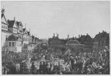 | Keywords: Jahrhundertausstellung 1906 KatNr. 1999.jpg Artwork Creator Johann Carl Wilck Einzug Friedrich Franz I in Schwerin 1806 Oil Canvas cm 72 107 Großherzogl Museum Schwerin i M lt Quelle Vorstand der Deutschen Jahrhundertausstellung Herausgeber žKatalog zur Ausstellung deutscher Kunst aus der Zeit von 1775 “1875 in der Königlichen Nationalgalerie Berlin Verlag F Bruckmann AG München 1906 2 Bände ; self scanned from own book 1807/08 PD-old-70-1923 Other versions Johann Carl Wilck Jahrhundertausstellung deutscher Kunst 1906 Schwerin in the 19th century ImageNote 1 13 11 1724 1182 1755 1213 2 Die Basis gibt das Braunrot der Fassaden in der Mitte des Marktes und der Dächer der links gelegenen hellrosa Häuser Die Truppen dunkelgraublau und blutrot Die weißgekleideten Kinder mit roten Fleischtönen Hellgraublauer Himmel mit weißgrauen Wolken “ Bez unten rechts weiß Johann Wilck 1807/1808 pinxit ImageNoteEnd 1 |