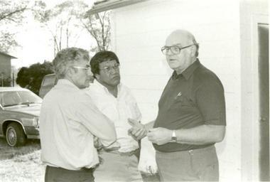| Keywords: monochrome Caption: October, 1985. Lawrence Hart (center) and Ray Horst (right) talk with Jake Wiebe (left, Winnipegosis, Manitoba, Canada. Citation: Mennonite Board of Missions Photographs. Native Americans, 1984-89. IV-10-7.3 Box 2 Folder 53. Mennonite Church USA Archives - Goshen. Goshen, Indiana. Caption: October, 1985. Lawrence Hart (center) and Ray Horst (right) talk with Jake Wiebe (left, Winnipegosis, Manitoba, Canada. Citation: Mennonite Board of Missions Photographs. Native Americans, 1984-89. IV-10-7.3 Box 2 Folder 53. Mennonite Church USA Archives - Goshen. Goshen, Indiana. |