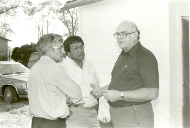 Keywords: monochrome Caption: October, 1985. Lawrence Hart (center) and Ray Horst (right) talk with Jake Wiebe (left, Winnipegosis, Manitoba, Canada. Citation: Mennonite Board of Missions Photographs. Native Americans, 1984-89. IV-10-7.3 Box 2 Folder 53. Mennonite Church USA Archives - Goshen. Goshen, Indiana. Caption: October, 1985. Lawrence Hart (center) and Ray Horst (right) talk with Jake Wiebe (left, Winnipegosis, Manitoba, Canada. Citation: Mennonite Board of Missions Photographs. Native Americans, 1984-89. IV-10-7.3 Box 2 Folder 53. Mennonite Church USA Archives - Goshen. Goshen, Indiana. |