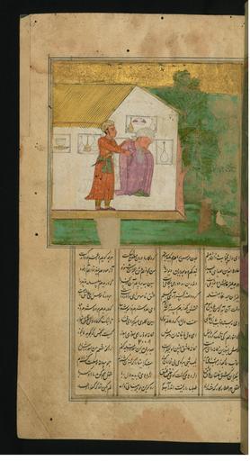 | Keywords: Jalal al-Din Rumi, Maulana - A Young Man and an Old Man - Walters W626267A - Full Page.jpg On this folio from Walters manuscript W 626 a young man in love with an old man comes to visit him but finds him asleep He puts some walnuts in his pocket as a sign of his continuous affection islamic 1663 1073 ink and pigments on thin laid paper probably Kashmiri cm 26 5 15 accession number W 626 267A 83775 Ibrahim date and mode of acquisition unknown round seal impression Ibrahim on front flyleaf iia Henry Walters Baltimore date and mode of acquisition unknown Walters Art Museum Henry Walters Acquired by Henry Walters place of origin Bharat Walters Art Museum license 2D Manuscript by Rumi Walters MS 626 Media contributed by the Walters Art Museum needs category review |