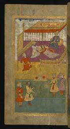 | Keywords: Jalal al-Din Rumi, Maulana - A Court Scene with a Physician Feeling a Sick Woman's Pulse - Walters W6263A - Full Page.jpg This folio from Walters manuscript W 626 is the left side of a double-page illustrated frontispiece introducing the 1st book daftar of the Masnavi islamic 1663 1073 ink and pigments on thin laid paper probably Kashmiri cm 26 5 15 accession number W 626 3A 83725 Ibrahim date and mode of acquisition unknown round seal impression Ibrahim on front flyleaf iia Henry Walters Baltimore date and mode of acquisition unknown Walters Art Museum Henry Walters Acquired by Henry Walters place of origin Bharat Walters Art Museum license 2D Manuscript by Rumi Walters MS 626 Media contributed by the Walters Art Museum needs category review |