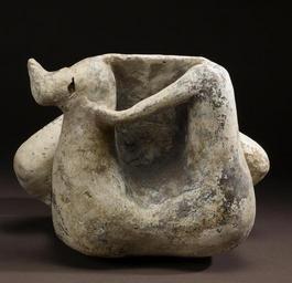 | Keywords: Jalisco - Mother and Child - Walters 20092015 - Bottom.jpg A mother proudly supports her male child who with her help stands securely on her lap She sits in the proper position for women legs folded to the side and concealed below her wrap skirt This cream-slipped sculpture was made during the culmination of the shaft tomb tradition in West Mexico when tombs were filled with spirited figural sculptures and decorated pottery vessels and the bodies of the deceased were dressed in fine clothing and jewelry of shell and stone The figures' cream-slipped surface and the restrained painting with which her dress is depicted are characteristic of an artistic substyle of the famous El Arenal Brown sculptural tradition of northern Jalisco Jalisco's pottery sculptors created a vast array of figures portraying all manner of social and political personages The figures are famous for the renderings of warriors brandishing shields and club-weapons and wearing helmets and armor of cotton batting Others portray members of the ruling elite majestically standing with staff of office in hand Shamans and healing rites were frequently depicted as were individuals afflicted with diseases or congenital deformities Portrayals of women were equally prominent the majority featuring either their political or spiritual shamanic powers or their magical ability to create life in the form of children This sculpture is a particularly informal yet stately expression of the procreative power of women and their lifelong calling as nurturers 100 BC-AD 200 earthenware white slip with black and red paint cm 37 2 30 9 23 2 accession number 2009 20 15 80170 Michael Robins date and mode of acquisition unknown John G Bourne 1990s mode of acquisition unknown Walters Art Museum Gift of John Bourne 2009 place of origin Jalisco Mexico Walters Art Museum license Pottery from ancient Jalisco in the Walters Art Museum Art of Mexico Media contributed by the Walters Art Museum needs category review Statues of mothers with children |