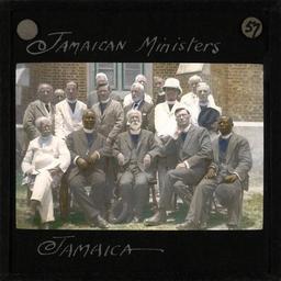 | Keywords: Jamaican Ministers, Jamaica, ca.1875-ca.1940 (imp-cswc-GB-237-CSWC47-LS11-057).jpg en <br> Jamaican Ministers Jamaica ca 1875-ca 1940 Photograph of a group of 16 Jamaican ministers They are gathered outside a red brick building possibly a church all are wearing ministerial clothing Five ministers are seated in a row at the front with two rows standing behind ; This belongs to a series of Church of Scotland Foreign Missions Committee lantern slides relating to Jamaica In 1800 the Scottish Missionary Society sent three missionaries to Jamaica Two died of yellow fever within weeks of arrival but the third became a pioneer missionary In 1824 a second venture travelled to Jamaica by invitation of local planters to instruct their slaves Scottish missionaries worked at Montego Bay in the 19th century and in 1836 the first presbytery of the Jamaican Church was constituted here Photographer Unknown Filename imp-cswc-GB-237-CSWC47-LS11-057 tif Coverage date circa 1875/1940 Part of collection International Mission Photography Archive ca 1860-ca 1960 Type images Part of subcollection Photographs from the Centre for the Study of World Christianity University of Edinburgh U K ca 1900-ca 1940s Repository name Centre for the Study of World Christianity Archival file impaunpub_Volume7/1832 url Repository address The University of Edinburgh School of Divinity New College Mound Place Edinburgh EH1 2LX United Kingdom Geographic subject country Jamaica Format aacr2 1 lantern slide 8 x 8 cm Geographic subject continent North and Central America Rights Contact the repository for details Part of series Jamaica LS11 Repository email divinity-CSWC ed ac uk Subject lcsh Keyword Clergy Date created circa 1875/1940 Publisher of the digital version University of Southern California Libraries Subject aat genre group portraits Format aat lantern slides Legacy record ID impa-m69411 Access conditions http //www ed ac uk/schools-departments/divinity/research/centres/world-christianity/collections-resources File GB 237 CSWC47/LS11/57 circa 1875 /1940 date created author http //digitallibrary usc edu/cdm/ref/collection/p15799coll123/id/64948 PD-old-70-1923 Magic lantern images Images from USC Digital Library uploaded by Fæ International Mission Photography Archive ca 1860-ca 1960 |