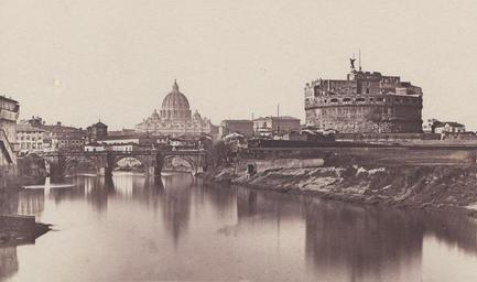 | Keywords: James Anderson Rome Tiber with Castel Sant Angelo c1853.jpg View of St Peter's Basilica over the Tiber River Circa 1853 Salt print from a glass negative 14 3 x 24 cm http //www bassenge com Galerie Bassenge ~ 1853 James Anderson PD-old Images from Galerie Bassenge Rome in the 19th century James Anderson Historical images of Rome by Anderson Historical images of Castel Sant'Angelo Rome 1853 photographs | ||||