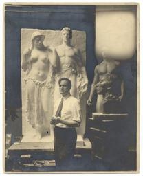 | Keywords: smithsonian institution smithsonianinstitution james earle fraser jamesearlefraser artist sculptor sculpture studio new york armory show 1913 newyorkarmoryshow1913 classical sculpture classicalsculpture nudes statues greco-roman grecoroman photo black and white blackandwhite marble bust man james earle frasier jamesearlefrasier frasier in his studio frasierinhisstudio james earle fraiser jamesearlefraiser nude sculpture nudesculpture fraser with sculpture fraserwithsculpture fraser archives of american art archivesofamericanart black and white Description: Fraser in his studio with his sculpture; photographer unknown. Fraser, James Earle, 1876-1953 Creator/Photographer: Unidentified photographer Medium: Black and white photographic print Dimensions: 25 cm x 20 cm Date: c. 1920 Persistent URL: www.aaa.si.edu/collections/images/detail/james-earle-fras... Repository: Archives of American Art Accession number: aaa_miscphot_5192 Description: Fraser in his studio with his sculpture; photographer unknown. Fraser, James Earle, 1876-1953 Creator/Photographer: Unidentified photographer Medium: Black and white photographic print Dimensions: 25 cm x 20 cm Date: c. 1920 Persistent URL: www.aaa.si.edu/collections/images/detail/james-earle-fras... Repository: Archives of American Art Accession number: aaa_miscphot_5192 |