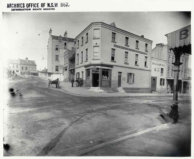 Keywords: archives state records nsw staterecordsnsw newsouthwales blackandwhite sydney hotels kent street kentstreet crescent street crescentstreet people children james family hotel jamesfamilyhotel waaitg pub photo border road outdoor building architecture black and white James Family Hotel, corner of 168 Kent Street and Crescent Street, Sydney Dated: c.01/01/1888 Digital ID: 4481_a026_000061 Rights: www.records.nsw.gov.au/about-us/rights-and-permissions We'd love to hear from you if you use our photos. Many other photos in our collection are available to view and browse on our website using Photo Investigator. James Family Hotel, corner of 168 Kent Street and Crescent Street, Sydney Dated: c.01/01/1888 Digital ID: 4481_a026_000061 Rights: www.records.nsw.gov.au/about-us/rights-and-permissions We'd love to hear from you if you use our photos. Many other photos in our collection are available to view and browse on our website using Photo Investigator. |
