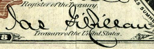 | Keywords: James Gilfillan (Engraved Signature).jpg en Engraved signature on U S Bank Notes “ paper currency 2012-12-26 www nationalcurrencyfoundation org Bureau of Engraving and Printing Smithsonian Institution PD-USGov Engravings Signatures of U S Treasurers on United States Banknotes Gilfillan James Smithsonian Institution Currency National Numismatic Collection Banknote signatures scanned by User Godot13 | ||||
