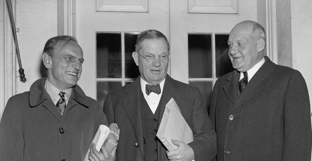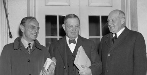 | Keywords: James M Landis - Walter Stacy - Harry A Millis - 1938-10-29.jpg James M Landis Dean of Harvard Law School; Walter Stacy Chief Justice of the Supreme Court of North Carolina; and Dr Harry A Millis Chair Department of Economics at the University of Chicago Landis Stacy and Millis were the three members of a fact-finding board appointed by President Franklin D Roosevelt pursuant to his powers under the Railway Labor Act to investigate and make recommendations to the President regarding a major labor dispute The Chicago Great Western Railroad had demanded a 15 percent wage cut affecting 960 000 workers The fact-finding board vetoed its request This photo was taken October 29 1938 as the board made its report to the President http //lcweb2 loc gov/service/pnp/hec/25200/25276v jpg Harris and Ewing Collection LIbrary of Congress 1938-10-29 Harry A Millis - 1938-10-29 jpg PD-Harris-Ewing Civil servants of the United States Harvard Law School faculty Landis James M Supreme Court justices of North Carolina North Carolina Stacy Walter Faculty of the University of Chicago Millis Harry A 1938 in the United States October 1938 1938 in politics |