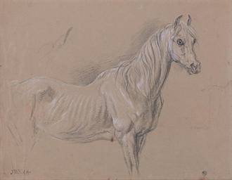 | Keywords: James Ward - A Mare- Possibly a Study for "L'Amour de Cheval", Dated 1827, in the Tate Gallery - Google Art Project.jpg Inscribed in brown ink lower left JWD RA ; in black ink verso upper center Study of a mare in the picture now at the Tate Gallery of a stallion and mare_ T E L 1940 Inscription _Marks T E Lowinsky collector's stamp on bottom right Inscription _Signed_and_Dated Signed in brown ink lower left JWD RA Not on View Charcoal and white chalk on medium smooth brown wove paper mare animal art sporting art special url_id xAHDTE-LYDjB9g PD-old-100-1923 1859 Drawings by James Ward Google Art Project works by James Ward |