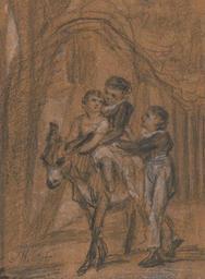 | Keywords: James Ward - Study for the Oil Painting "The Children of Theophilus Levitt, Esquire." - Google Art Project.jpg Inscribed in gray ink lower left JW RA ; in brown ink verso center Design for Portraits of the children of Theophilus Levitt Esq- at Winchner Park Inscription _Signed_and_Dated Signed in gray ink lower left JW RA Not on View Black and white chalk on medium slightly texture brown wove paper donkey children study visual work genre subject special url_id tgGaD1t26rbGbQ PD-old-100-1923 1859 Drawings by James Ward Google Art Project works by James Ward |