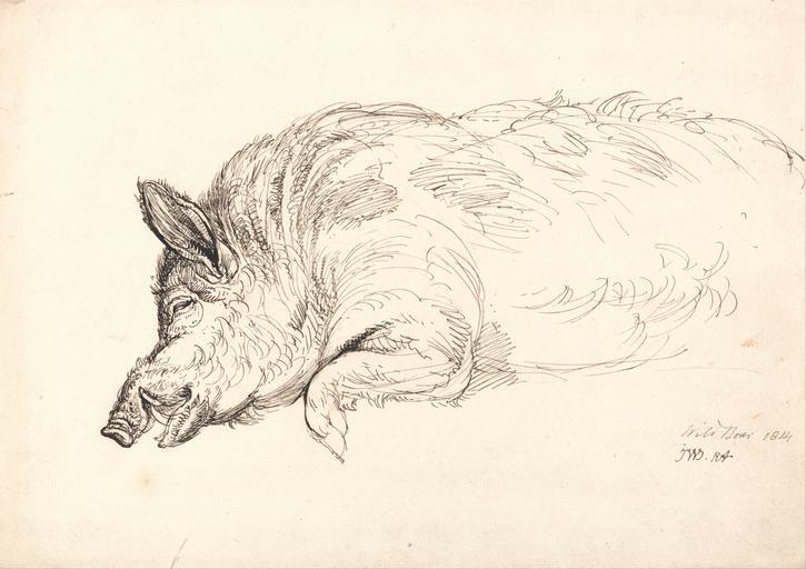 Keywords: James Ward - A Wild Boar, Asleep or Dead - Google Art Project.jpg Inscribed in brown ink lower right Wild Boar 1814 JWD RA Inscription _Signed_and_Dated Signed in brown ink lower right JWD RA Not on View Brown ink on moderately thick moderately textured beige wove paper animal art boar special url_id 0gFZd_uYLCtt2g PD-old-100-1923 1859 Drawings by James Ward Google Art Project works by James Ward Drawings of pigs |