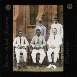 | Keywords: Jammu Kirk Session, Jammu, ca.1875-ca.1940 (imp-cswc-GB-237-CSWC47-LS10-052).jpg en <br> Jammu Kirk Session Jammu ca 1875-ca 1940 Photograph of 4 Indian men and one missionary seated outside a red brick church building A Kirk Session is an ecclesiastical court in Scotland composed of the minister and elders of a parish ; This belongs to a series of Church of Scotland Foreign Missions Committee lantern slides relating to Jammu City which is also known as the City of Temples A mission station occupied by Church of Scotland missionaries was founded here in the late 19th/early 20th century Jammu is also one of the three administrative divisions within Jammu and Kashmir the northernmost state in India Photographer Unknown Filename imp-cswc-GB-237-CSWC47-LS10-052 tif Coverage date 1875/1940 Part of collection International Mission Photography Archive ca 1860-ca 1960 Geographic subject region Jammu and Kashmir Type images Part of subcollection Photographs from the Centre for the Study of World Christianity University of Edinburgh U K ca 1900-ca 1940s Repository name Centre for the Study of World Christianity Archival file impaunpub_Volume7/1769 url Repository address The University of Edinburgh School of Divinity New College Mound Place Edinburgh EH1 2LX United Kingdom Geographic subject country India Format aacr2 1 lantern slide 8 x 8 cm Geographic subject continent Asia Rights Contact the repository for details Part of series In the Temple City of Jammu LS10 Repository email divinity-CSWC ed ac uk Subject lcsh Keyword Clergy; Christian leadership Date created 1875/1940 Publisher of the digital version University of Southern California Libraries Subject aat genre group portraits Format aat lantern slides Legacy record ID impa-m69320 Access conditions http //www ed ac uk/schools-departments/divinity/research/centres/world-christianity/collections-resources File GB 237 CSWC47/LS10/52 1875/1940 author http //digitallibrary usc edu/cdm/ref/collection/p15799coll123/id/64886 PD-old-70-1923 Magic lantern images Images from USC Digital Library uploaded by Fæ International Mission Photography Archive ca 1860-ca 1960 People of Jammu Missionaries in India |