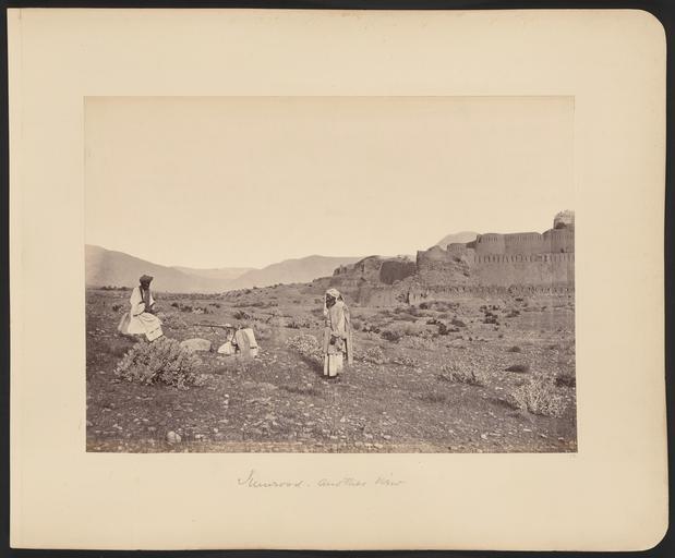 | Keywords: Jamrūd Fort, Another View WDL11468.png Artwork ru Шепе д Ча льз асцвет тво чества в 1858 1878 годах fr Shepherd Charles actif de 1858 à 1878 en Shepherd Charles flourished 1858 1878 zh 查尔斯·谢泼德,全盛时 :1858 1878 年 pt Shepherd Charles prosperou entre 1858 e 1878 ar شيبرد، تشارلز، ازدهرت أعماله في 1858-1878 es Shepherd Charles prosperó entre 1858 y 1878 ru К епость Джам уд д угой вид fr Fort de Jamrūd une autre vue en Jamrūd Fort Another View zh 另 视角下的贾姆鲁德要塞 pt Forte de Jamrūd outra perspectiva ar حصن جَمْرود، منظر آخر ru Эта фотог афия к епости Джам уд входит в альбом едких исто ических фотоснимков на кото ых изоб ажены люди и места связанные со Вто ой англо-афганской войной К епость асположена на те ито ии сов еменного Пакистана возле восточного входа в Хайбе ский п оход ст атегически важный путь че ез го ную цепь Гиндукуш идущий вдоль исто ического Великого шелкового пути и в XIX веке соединявший Б итанскую Индию с Афганистаном а этом месте в 1836 1837 годах состоялось г андиозное с ажение между Сикхской и Ду анийской импе иями есмот я на то что на снимке к епость выглядит обветшалой она была важным п омежуточным пунктом на пути че ез Хайбе ский п оход и место асположением штаба Хайбе ского ст елкового полка вспомогательного под азделения Б итанской индийской а мии а пе еднем плане п едставитель одного из афганских племен т ени уется в ст ельбе из джезайла удлиненного тяжелого мушкета по асположенной вдали цели а двое его това ищей наблюдают за ним Вто ая англо-афганская война началась в нояб е 1878 года когда Великоб итания опасаясь как ей казалось астущего влияния России в Афганистане вто глась в эту ст ану с те ито ии Б итанской Индии Пе вый этап войны закончился в мае 1879 года подписанием Гандамакского догово а позволившего афганцам сох анить внут енний суве енитет однако заставившего их уступить конт оль над внешней политикой своей ст аны б итанцам Военные действия возобновились в сентяб е 1879 года после антиб итанского восстания в Кабуле и окончательно заве шились в сентяб е 1880 года ешающей битвой за Кандага Данный альбом включает по т еты б итанских и афганских лиде ов и военнослужащих фотог афии п остых афганских людей изоб ажения б итанских военных лаге ей военных действий ст оений пейзажей к упных и небольших го одов Все изоб аженные на фотоснимках места находятся на те ито ии сов еменных Афганистана или Пакистана в то в емя бывших частью Б итанской Индии Около т ети п едставленных в альбоме фотог афий выполнены Джоном Бе ком около 1843 1900 гг д угая т еть сэ ом Бенджамином Симпсоном 1831 1923 гг а оставшаяся часть несколькими д угими фотог афами Авто ы некото ых фотоснимков неизвестны Возможно что составителем альбома был один из членов б итанского п авительства в Индии однако это п едположение не подтве ждено Каким об азом альбом попал в Библиотеку Конг есса неизвестно <br>Афганские войны; К епости и фо тификационные соо ужения; Хайбе ский п оход Афганистан и Пакистан ; Го ные п оходы; Го ы fr Ce cliché du fort de Jamrūd est extrait d'un album de photographies historiques rares de personnalités et de sites associés à la seconde guerre anglo-afghane Le fort est situé au Pakistan actuel à l'entrée est du col de Khyber lieu stratégique important permettant de franchir la chaîne de montagnes de l'Hindu Kush le long de l'antique route de la soie qui reliait l'Inde britannique à l'Afghanistan au XIX<sup>e</sup> siècle Il fut le site d'une bataille majeure entre les Empires Sikh et Durrani de 1836 à 1837 Bien que le fort semble en ruine il s'agissait d'un point de transit essentiel pour les traversées du col et il devint le siège du régiment d'infanterie de Khyber force auxiliaire de l'armée indienne britannique Au premier plan de la photographie un membre de tribu afghan s'entraîne à tirer avec son jezail lourd mousquet allongé sur une cible au loin sous le regard de deux compagnons 