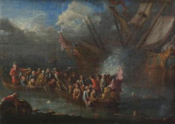 | Keywords: Jan Baptist van der Meiren - Sailors escaping from a burning ship.jpg Artwork creator Jan Baptist van der Meiren en Sailors escaping from a burning ship 1679 - 1736 https //www bonhams com/auctions/11912/lot/130/ oil canvas cm 18 7 26 5 Sold at Bonhams on 6 July 2005 in London lot 130 PD-old-100 Jan Baptist van der Meiren Paintings of ships in distress | ||||