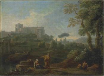 | Keywords: Jan Frans van Bloemen - A classical landscape with a capriccio of the Vatican Belvedere, figures conversing in the foreground.jpg Artwork creator Jan Frans van Bloemen en A classical landscape with a capriccio of the Vatican Belvedere figures conversing in the foreground 1677-1749 http //www christies com/lotfinder/paintings/jan-frans-van-bloemen-called-il-orizzonte-5857579-details aspx from searchresults intObjectID 5857579 sid 69d6dd18-469d-455c-a52b-411f4222a0e5 Oil canvas cm 49 9 67 7 Sold by Christie's on 3 December 2-14 lot 153<br>Pendant of the 'A classical landscape with a capriccio of the Vatican Belvedere figures conversing in the foreground' PD-old-100 DEFAULTSORT 1 Pendant Jan Frans van Bloemen |