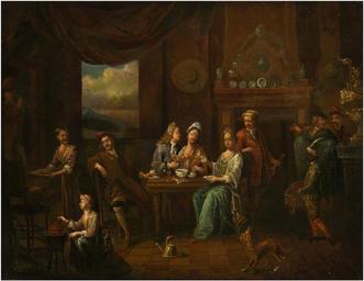 | Keywords: Jan Josef Horemans the Elder - Courtly company at table.jpg Courtly company at table oil canvas 65 5 x 85 cm https //www hampel-auctions com/o/Jan-Josef-Horemans-1682-Antwerpen-1759-ebenda-zug html a 107 s 517 id 314 acl 1071515 q Jan 20Josef 20Horemans century 18 At Hampel Auctions on 22 September 2016 lot 970 Signed below right Creator Jan Josef Horemans I PD-old-100 Jan Josef Horemans I Images from Hampel Auctions Merry companies in Flemish genre paintings 18th-century oil on canvas paintings 18th-century paintings in unidentified private collections Servants in art 18th-century paintings in private collections |