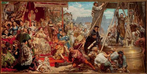 | Keywords: Jan Matejko, Zawieszenie dzwonu Zygmunta na wieży katedry w Krakowie w 1521 roku.jpg Artwork Creator Jan Matejko 1874 http //cyfrowe mnw art pl/dmuseion/docmetadata id 4798 oil canvas Size cm 94 189 Size cm 102 198 x 5 Institution National Museum in Warsaw ZBIORY SZTUKI POLSKIEJ DO 1914 r place of discovery object history exhibition history credit line accession number MP 441 http //cyfrowe mnw art pl/dmuseion/docmetadata id 4798 MNW Cyfrowe PD-old-100 National Museum in Warsaw partnership The Hanging of the Sigismund bell at the Cathedral Tower in 1521 in Kraków by Jan Matejko |