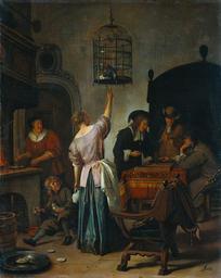 | Keywords: Jan Steen 009.jpg Artwork LangSwitch Der Papageienkäfig The Parrot Cage De papegaaiekooi Oil canvas panel cm 50 40 Institution Rijksmuseum Amsterdam JSteen signature bottom right ~ Object history ProvenanceEvent 1809 purchase LangSwitch das the le het Rijksmuseum Amsterdam Amsterdam Exhibition history Jan Steen 1958-1959 35 The Milkmaid by Vermeer and Dutch Genre Painting The Golden Age of Dutch Painting Masterpieces from the Rijksmuseum Amsterdam www geheugenvannederland nl http //www geheugenvannederland nl Home http //www geheugenvannederland nl/ /en/items/RIJK01 SK-A-386 Info http //resources21 kb nl/gvn/RIJK01/RIJK01_M-SK-A-386-00_X JPG Pic SK-A-386 Interieur met een vrouw die een papegaai voert twee triktrakspelers en andere figuren bekend als ˜De papegaaiekooi ™ Other date ~ 1660 - ~ 1670 6385 De papegaaienkooi Other date ~ 1665 1664-1666 20186083 Die Frau und der Papagei 1641/1679 SK-A-386 ~ 1665 creator Jan Steen Other versions PD-old-100 Paintings by Jan Steen 1665 Parrot Cage 17th-century genre paintings Baroque paintings Parrots in paintings People with parrots in art People with birds 1660s paintings Paintings by Jan Steen in the Rijksmuseum Amsterdam 1665 Parrot Cage Pets in art Games in art 17th-century way of life in painting |