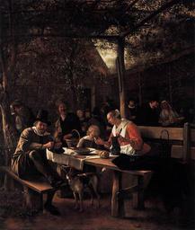 | Keywords: Jan Steen - Tavern Garden - WGA21725.jpg Artwork Creator Jan Steen ca 1660 Oil on canvas size cm 68 58 Institution Gemäldegalerie Berlin object history credit line accession number WGA link 21725 http //www wga hu/art/s/steen/page1/picnic jpg http //www wga hu/html/s/steen/page1/picnic html PD-old-100 painting genre Dutch 1651-1700 Jan Steen 1660 Tavern Garden Dutch Golden Age paintings in the Gemäldegalerie Berlin Steen 1660 paintings WGA form painting WGA type genre WGA School Dutch WGA time period 1651-1700 17th-century entertainment and leisures in painting Tavern interiors in art Open air restaurant and café areas 1660s fashion 17th-century oil on canvas paintings in Germany 1660s paintings in Berlin |