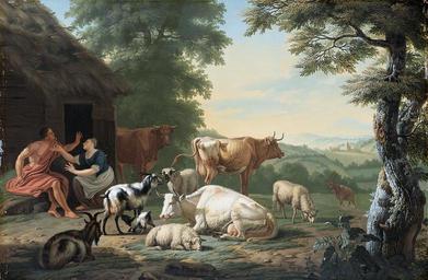 Keywords: Jan van Gool-herders met landschap.jpg Artwork Creator Jan van Gool LangSwitch Arcadian landscape with shepherds and animals At the door of a farm a kneeling women holds up a flower in front of the face of a sitting shepherd To the right cows sheep and goats To the right also a hilly landscape Arcadisch landschap met herders en vee Bij een boerderij houdt een vrouw knielend een bloem voor het gezicht van een zittende herder Rechts koeien schapen en geiten Rechts een heuvellandschap between 1700 1763 Ucfirst Oil on panel cm 42 5 63 Institution Rijksmuseum Amsterdam SK-C-133 LangSwitch Arcadian Landscape with Shepherds and Animals Arcadisch landschap met herders en vee 1710-1763 4846 LangSwitch Arcadian landscape with shepherds and animals Arcadisch landschap met herders en vee 1700-1763 object history by 1854 Adriaan van der Hoop 1778-1854 Amsterdam ProvenanceEvent 1854 bequest LangSwitch die Stadt Amsterdam the city of Amsterdam à la ville d ™Amsterdam de Stad Amsterdam Adriaan van der Hoop Amsterdam ProvenanceEvent 1885-06-30 loan LangSwitch das the au het Rijksmuseum Amsterdam Amsterdam LangSwitch die Stadt Amsterdam the city of Amsterdam la ville d ™Amsterdam de Stad Amsterdam exhibition history Zeldzame meesters 69 credit line J v Gool fc signature bottom center la accession number SK-C-133 place of creation Northern Netherlands www rijksmuseum nl http //www rijksmuseum nl/ lang en Home https //www rijksmuseum nl/collectie/SK-C-133 Info https //www rijksmuseum nl/assetimage2 jsp id SK-C-133 Pic Arcadisch landschap met herders en vee Rijksmuseum SK-C-133 jpeg Q17341949 PD-old-100 Dutch 18th-century paintings in the Rijksmuseum Amsterdam Gool Jan Van 1700 Jan van Gool 1700 Adriaan van der Hoop bequest