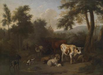 | Keywords: Jan Vermeer van Haarlem dJ Bewaldete Landschaft mit lagerndem Vieh.jpg Artwork Creator Jan Vermeer van Haarlem II by 1705 oil canvas cm 48 5 65 object history credit line accession number http //www dorotheum com Dorotheum PD-old-100 Images from Dorotheum Jan Vermeer van Haarlem II Paintings of cattle |
