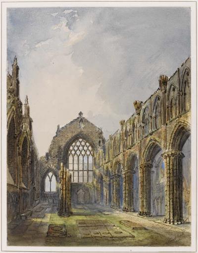 | Keywords: Jane Stewart Smith01.jpg en The ruin of Holyrood Abbey in Edinburgh with the remaining arches columns and windows 31 2 x 24 1 cm http //www capitalcollections org uk/index php a backward s gallery key BYTozOntpOjA7aTozNjI7aToxO2k6MTtpOjI7czoxMDoiY3JlYXRvciBvZiI7fQ Jane Stewart Smith 1839-1925 1868 Public domain Holyrood Abbey stands next to Holyrood Palace in Edinburgh The Abbey was founded by David I in 1128 several hundred years before Holyrood Palace The Abbey was badly damaged during the Reformation It was finally abandoned in 1768 after the roof collapsed The Edinburgh-based artist Jane Stewart Smith principally produced scenes of Edinburgh's streets and buildings in oil and watercolour as well as some portrait and still life work She was the author of two books The Grange of St Giles 1898 and Historic Stones and Stories of Bygone Edinburgh 1924 The Museum of Edinburgh formerly Huntly House Museum holds some of her original work Edinburgh City Libraries hold 30 original watercolours mostly depicting streets and closes in Edinburgh's Old Town PD-old Jane Stewart Smith Holyrood Abbey |