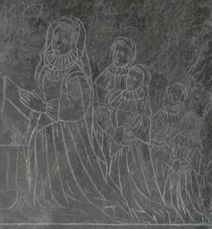 | Keywords: Jane Still (née Whitmore) depicted on the Nathaniel Still monument, Saint Mary the Virgin, Hutton, Somerset, UK - 20100930.jpg Jane Still née Whitmore 1587 “1639 and her daughters depicted on an etched stone mural monument to her husband Nathaniel Still died date 1635 02 02 of Hutton Somerset England UK high on west wall of south aisle in the parish church of Saint Mary the Virgin Hutton Nathaniel was the son of John Still c 1543 “ 26 February 1607/8 the Bishop of Bath and Wells Jane later married Henry Dennis Feb 1594 “ 1638 06 26 High Sheriff of Gloucestershire <p>The inscription on the monument reads In memory of Nathanill Still of this parrish Esq who dyed the second day of February Anno Domini 1626 Not that he needeth monuments of stone for his well-gotten fame to rest uppon but this was reard to testifie that hee lives in theire loves ye yet surviving for unto vertu who first raised his name hee left the preservation of the same and to posterity remaine it shall when brass and marble monuments shall fall </p> 2010-09-30 14 02 Own ; originally uploaded to https //en wikipedia org en wikipedia on 2011 09 16 Lobsterthermidor at en wikipedia other versions Nathaniel Still monument Saint Mary the Virgin Hutton Somerset UK - 20100930 jpg cc-zero Lobsterthermidor at http //en wikipedia org en wikipedia Original upload log page en wikipedia JaneWhitmoreStillAtHutton jpg 2011-09-16 22 43 Lobsterthermidor 1524×1646 431025 bytes <nowiki>Jane Still nee Whitmore widow of Nathaniel Still d 1626 of Hutton Somerset with her daughters Detail from mural monument to Nathaniel Still Hutton Church 1626 </nowiki> 1587 births 1639 deaths 17th-century church monuments Henry Dennis sheriff John Still Prayer in art Saint Mary the Virgin Hutton Stone carving in the United Kingdom Wall mounted church monuments in Somerset Women of England |