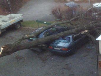 Keywords: Januaristormens förödelse.jpg Car accident Stockholm Sweden Capture date 2005-01-09 Source Self-made Photographer Alexander Augst 2005-07-19 own assumed Alers Accidents Damaged automobiles Destroyed vehicles
